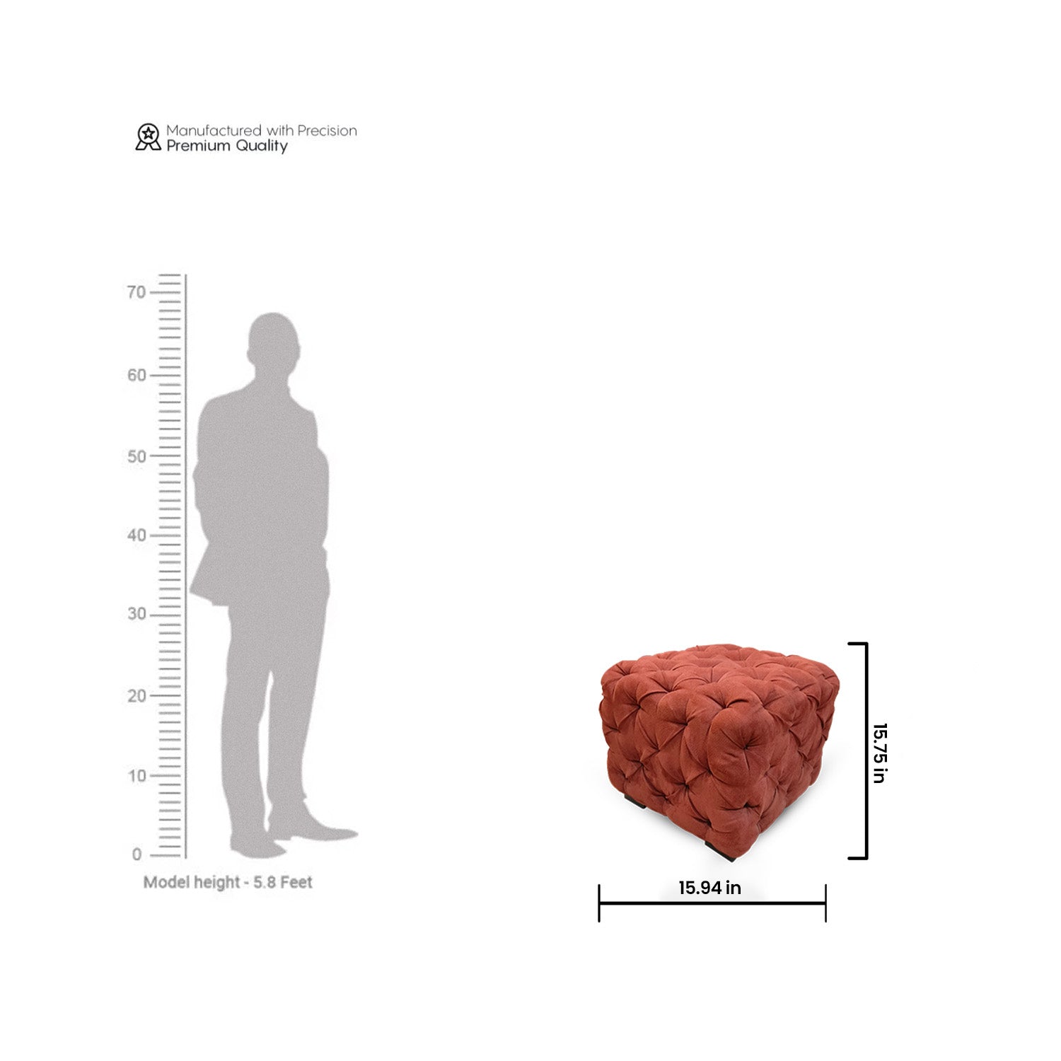 Add a daring statement to your room with the Chesterfield Cube Ottoman, a sophisticated piece that reflects traditional character with a contemporary twist. With deep button-tufted fabric in a sumptuous terracotta finish, this ottoman captures vintage Chesterfield style while providing multi-functional appeal—as a footrest, accent chair, or fashionable focal point. Made with long-lasting Sawan Timber and Matt Finish / Melamine Polished, it's tough as it looks and just as elegant, making it the ideal addition to any sophisticated lounge or modern setting.