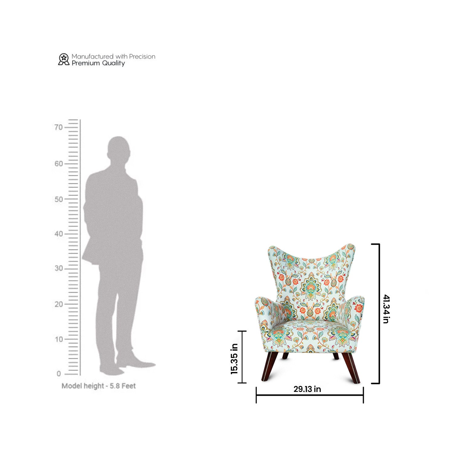 Add some bold personality and lively flair to your interiors with the Majestic Boho Wing Chair. Made from a strong blend of Sawan Timber and Flexi Plywood, and brushed with a glossy Melamine polish, the chair is as tough as it is captivating. The creative floral upholstery in multi-colored designs provides a contemporary bohemian touch, and thus serves as an eye-catching statement piece for any living room, study, or reading corner. Its elevated backrest and softly flared arms provide outstanding comfort and support, ensuring it is the ideal combination of fashion and leisure.