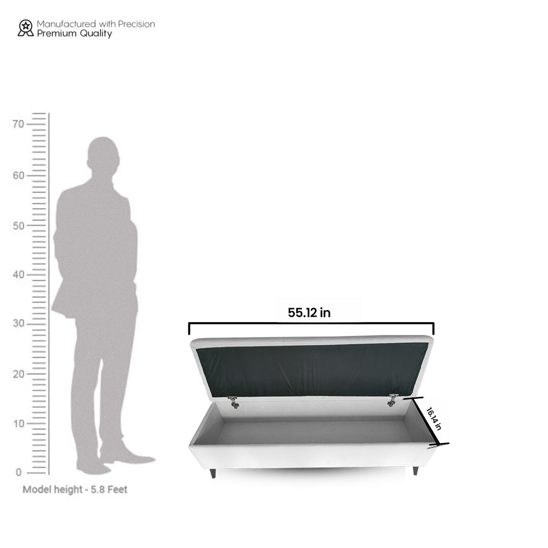 Understated yet striking, the Oslo Storage Bench is a Scandinavian-inspired ottoman crafted in cotton upholstery with a clean matte finish. Built on an 18 mm plywood base with CP teak wood legs, it seamlessly combines storage and seating. Perfect for modern bedrooms, living rooms, or studies craving sleek utility.