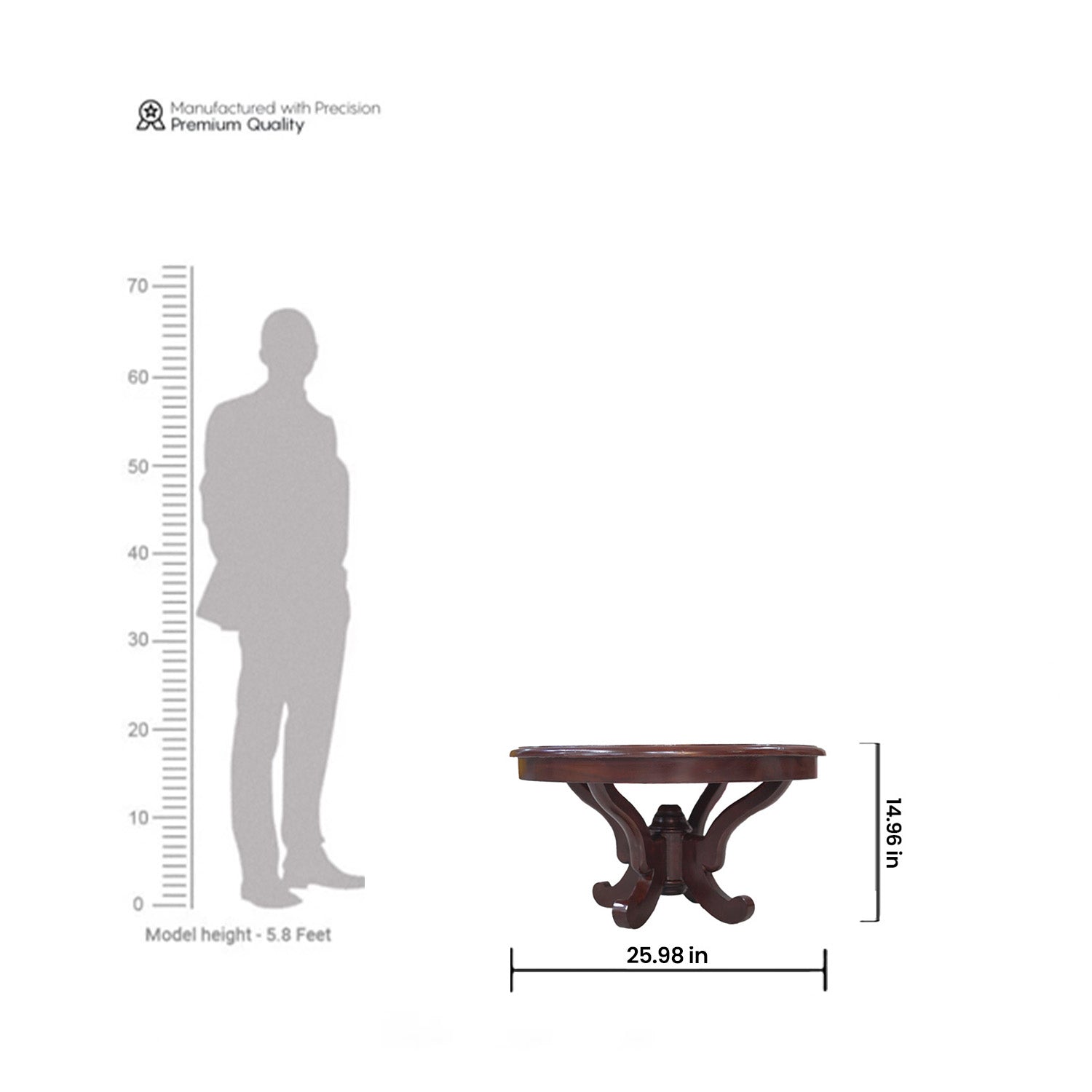 Add a refined, classical touch to your living space with the Royal Walnut Round Tea Table. Expertly crafted with a strong CP teakwood base, this table stands out with its ornate, vintage-style curved legs and robust structure. The tabletop is made from 18mm plywood and finished with a rich natural veneer, offering both durability and timeless appeal.