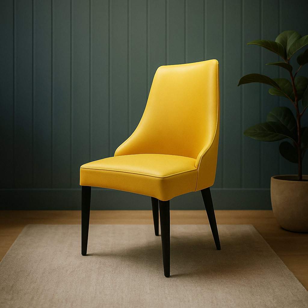 Brighten your dining, living, or study space with the Soleil Modern Accent Chair, featuring a bold yellow hue and sleek, contemporary silhouette. Its ergonomic design and smooth finish offer both comfort and style, making it a standout piece in any room. Perfect for those who love a pop of color and modern elegance in their décor
