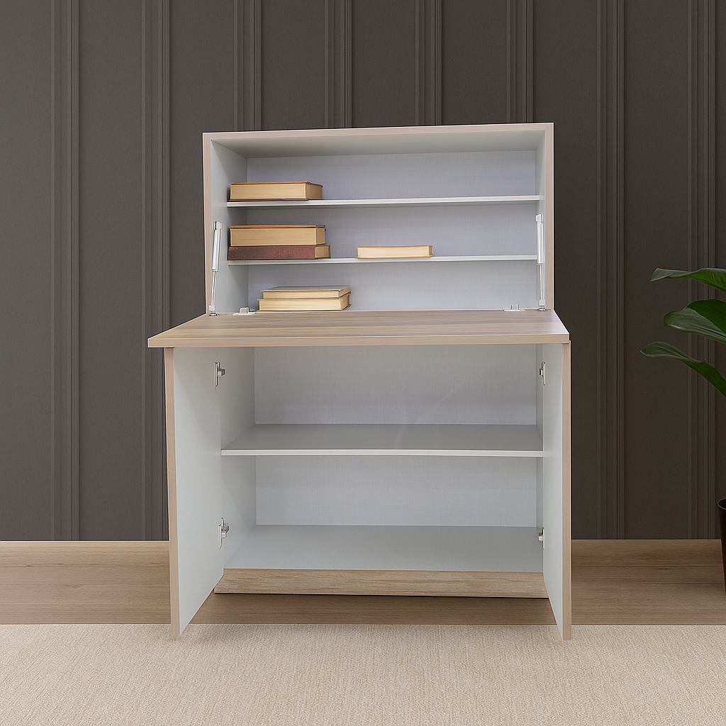 Crafted in earthy tones with an 18mm plywood frame, The Terra WorkPod doubles as a study table and a sleek storage solution. Its matt finish mica exterior gives it a modern yet warm feel, making it ideal for home offices, bedrooms, or creative corners. Function meets form in this minimalist essential.