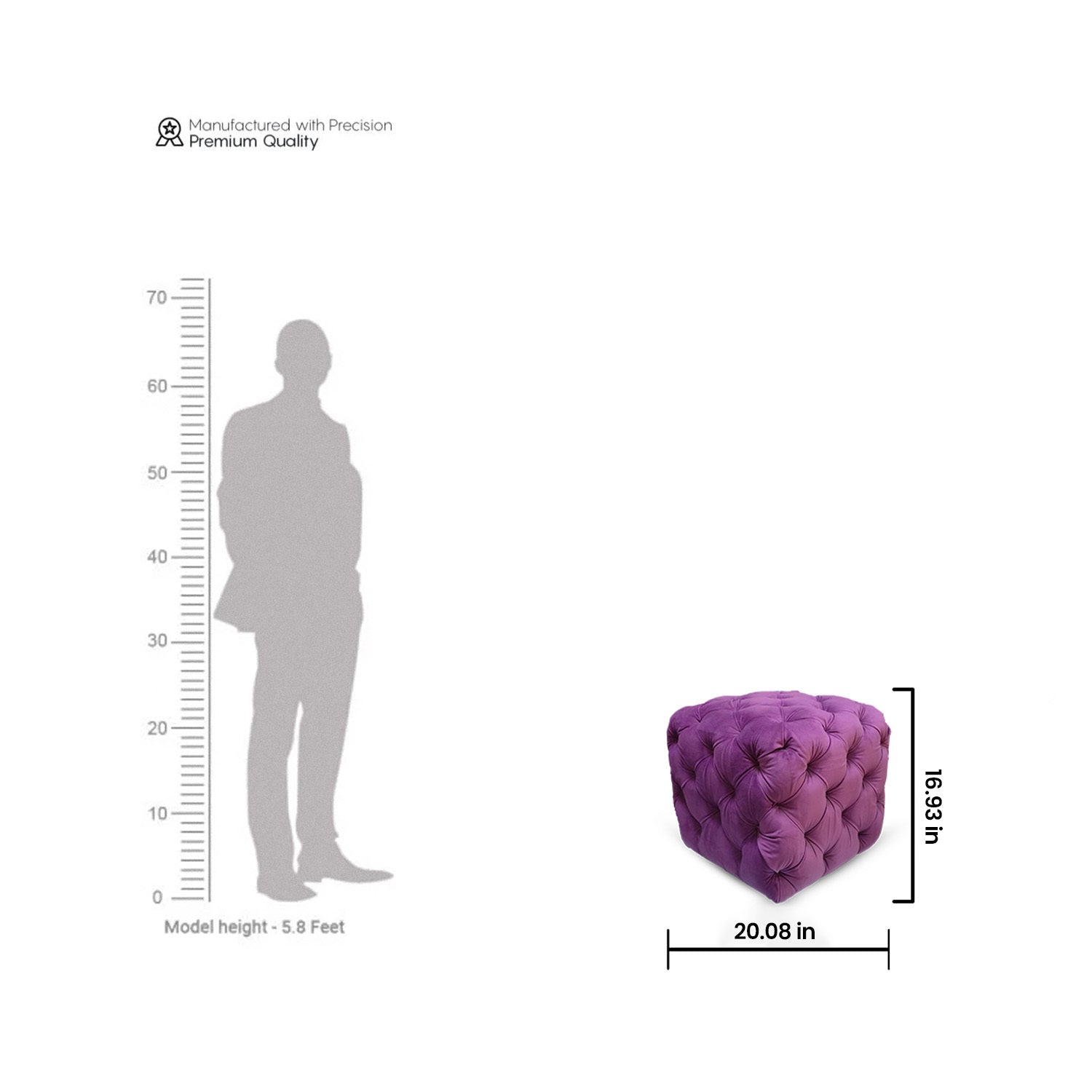 Add a statement to your design with the Tufted Velvet Ottoman, a sumptuous cube combining luxury and function. Covered in luxurious, purple velvet and featuring traditional deep button tufting on every side, this item brings texture and personality to any space. As a footrest, a statement seat, or a decorative element, it delivers comfort as well as aesthetics. Made of Sawan Timber and bolstered with CP Teak Wood legs, finished in Matt Finish with Melamine Polish—and thus a highly durable and luxurious piece that can be added to both classic and modern interiors.