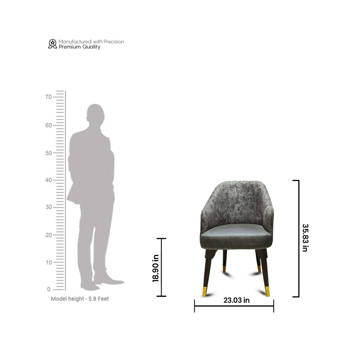 Infuse an atmosphere of sophistication and inviting comfort into your environment with the Velvet Ember Chair, a fascinating piece that balances soft texture and contemporary style with great skill. The chair features a curved back and hugging arms that provide a cocooning effect, ideal for stylish relaxation and distinctive dining, and is enveloped in soft, smoky velvet. Refined by robust CP teak wood legs, completed with a melamine matte finish and gold-tipped accents that provide a glimpse of modernity, it is fashioned with a long-lasting flexi plywood back. The chair establishes itself as a combination of luxury and durability, making it a valuable asset to both home and commercial environments. Can tranform effortlessly from dining chair to study chair to lounge chair with comfortable back support