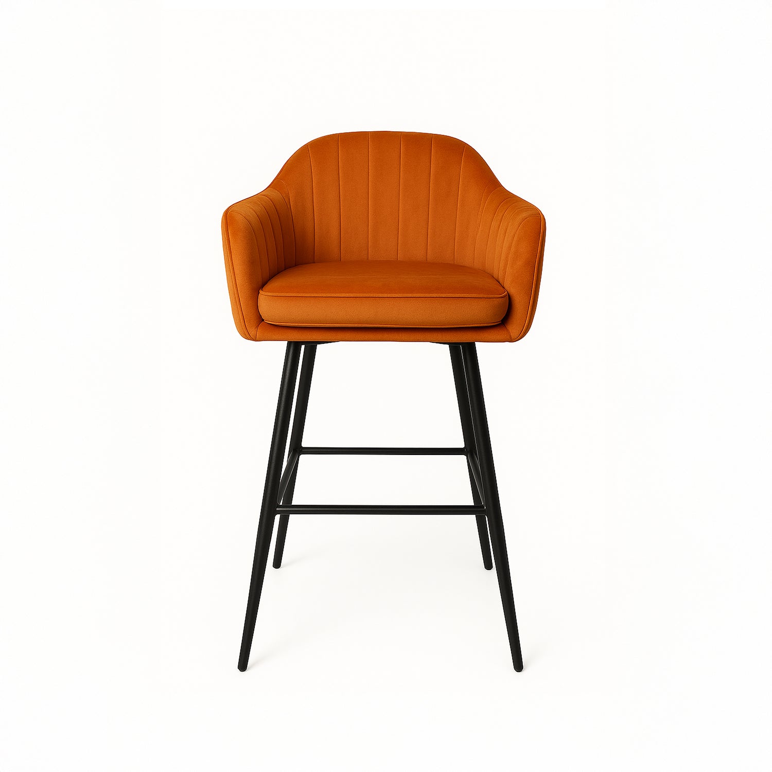 Bring a touch of modern sophistication to your interiors with the Terra Bar Chair, a striking and sophisticated piece that combines comfort and elegance. Covered in a rich burnt orange upholstery with understated vertical channel stitching, the chair adds warmth and personality to contemporary bar configurations or kitchen islands. The contoured armrests and soft cushioning provide a comfortable seating experience, while the thin MS Metal Frame with Black powder-coated finish provides long-lasting strength and stability. From casual entertaining to sophisticated entertaining, the Terra Bar Chair is a desirable addition to any raised space.