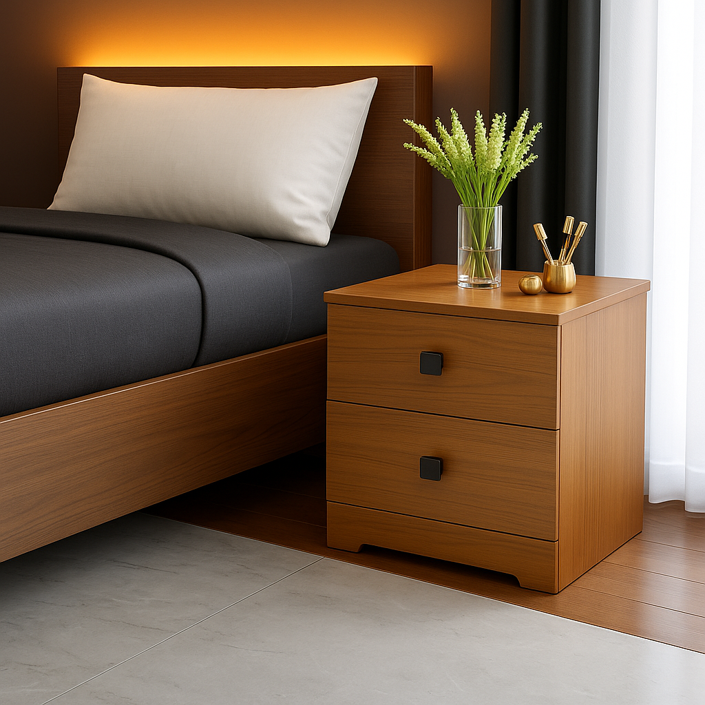 Add a touch of modern elegance to your space with the Walnut Velvet Side Table, crafted in 18mm plywood and finished in rich walnut matte mica. Featuring two seamless drawers with plush velvet upholstery, this versatile piece blends functionality and style for your bedroom, study, or office. Its sleek, practical design offers effortless storage while elevating your interiors with contemporary charm
